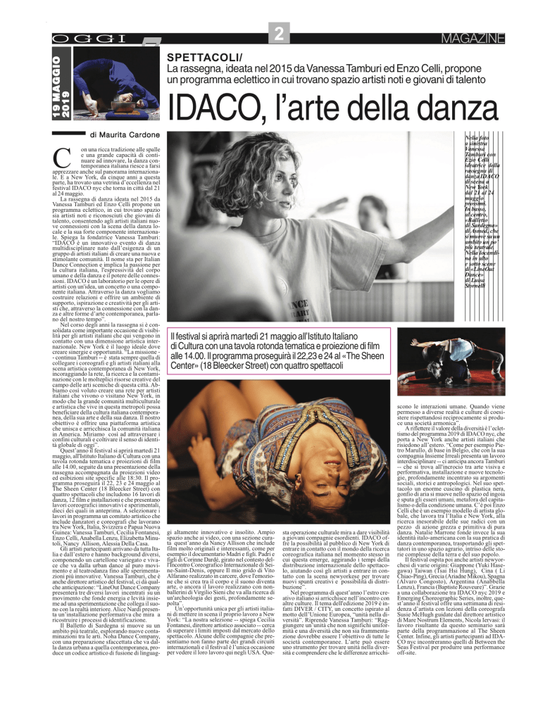 IDACO 2019, co-curated by Cecilia Fontanesi, Associate Artistic Director, featured by America Oggi (America Today)